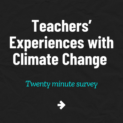 Survey on Teachers’ Experiences with Climate Change – ACE wants to learn more about teachers’ thoughts and feelings about climate change and also their experiences teaching climate change. This survey can be completed from any device, will be confidential, and will take approximately 20 min. Participants will be entered into a raffle for one of five $50 gift cards!